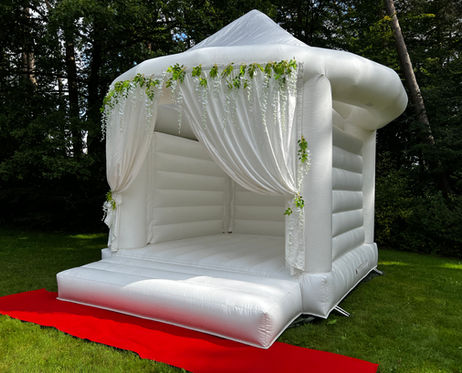 Mit unserer weißen Hochzeitshüpfburg wird eure Hochzeit garantiert unvergesslich! Die weiße Hüpfburg eignet sich auch für einzigartige Hochzeitsfotos von dem schönsten Tag! Das Hochzeitsschloss bietet neben tollen Fotos von dem Brautpaar auch Spielspaß für bis zu 10 Kinder. Auf Wunsch gibt es die weiße Hüpfburg auch mit toller Deko zu mieten – dazu gehört ein weißerTeppich, Blumendeko und Schleier.
